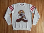 Show "The Faithful" how long you've been loyal and devoted with this retro style Sourdough Sammy ivory-colored pullover sweater by Good Game Garments.
